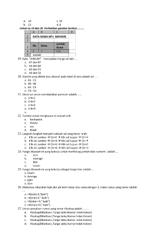 20. Daerah yang diblok atau disorot pada tabel di atas adalah sel ....