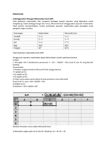 menghitung. Dalam berbagai fungsi dan rumus, Microsoft Excel menggunakan operator matematika.