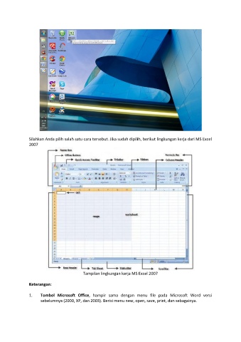 1. Tombol Microsoft Office, hampir sama dengan menu file pada Microsoft Word versi