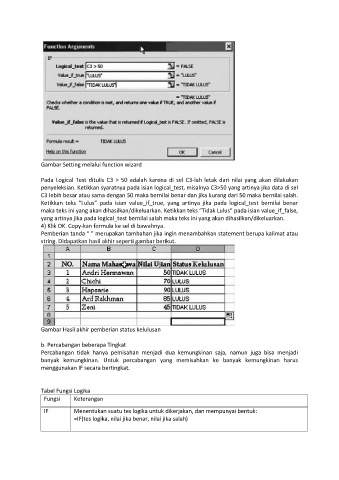 penyeleksian. Ketikkan syaratnya pada isian logical_test, misalnya C3>50 yang artinya jika data di sel