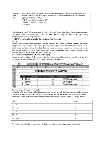 AND, OR, Merupakan fungsi tambahan untuk mengembangkan tes kondisi. Fungsi AND dan OR