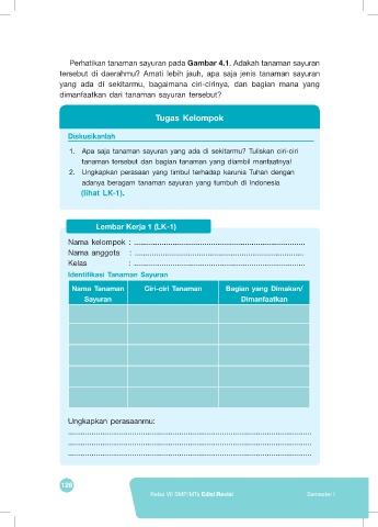 1. Apa saja tanaman sayuran yang ada di sekitarmu? Tuliskan ciri-ciri