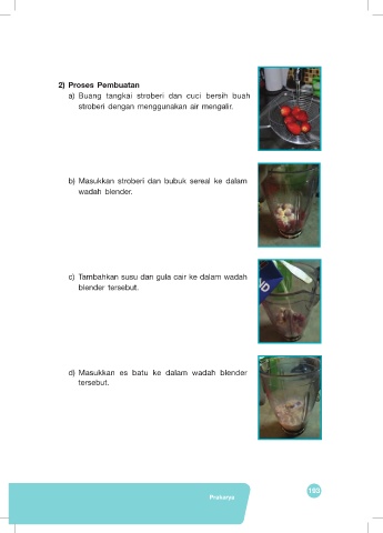 b) Masukkan stroberi dan bubuk sereal ke dalam