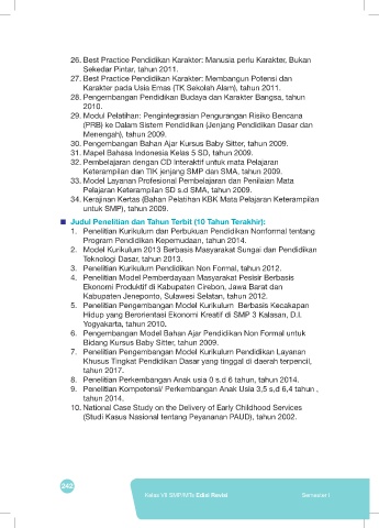 3. Penelitian Kurikulum Pendidikan Non Formal, tahun 2012.