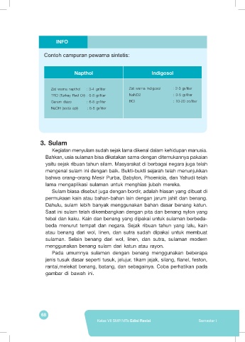 Zat warna napthol : 3-4 gr/liter Zat warna Indigosol : 2-3 gr/liter