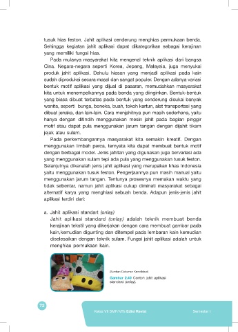 diselesaikan dengan teknik sulam. Fungsi jahit aplikasi adalah untuk
