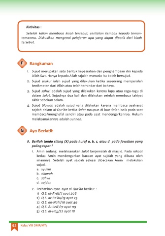 4. Sujud t lawah adalah sujud yang dilakukan karena membaca ayat-ayat