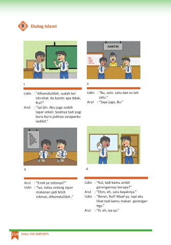 Udin : “Alhamdulillah, sudah bel Udin : “Bu, soto satu dan es teh