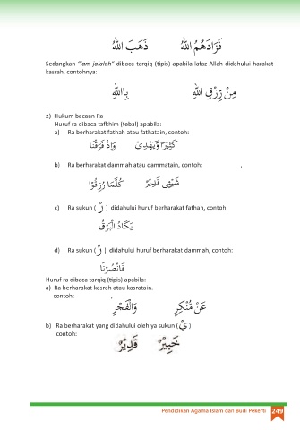 Sedangkan “lam jalalah” dibaca tar i t pis apabila lafaz Allah didahului harakat