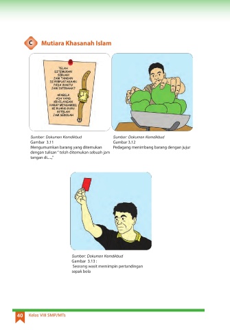 Mengumumkan barang yang ditemukan Pedagang menimbang barang dengan jujur