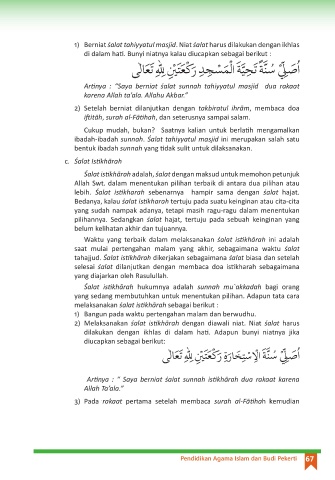 2) Melaksanakan śalat ist khārah dengan diawali niat. iat śalat harus
