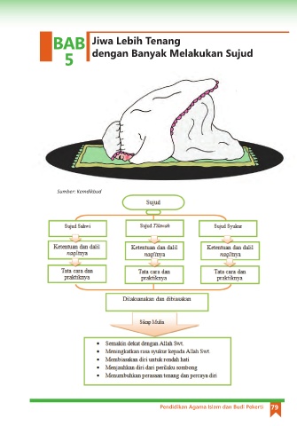 BAB Jiwa Lebih Tenang 5 dengan Banyak Melakukan Sujud Sumber: Kemdikbud Gambar 3.1 : Seorang anak perempuan sedang bersujud. Pendidikan Agama Islam dan Budi Pekerti 79