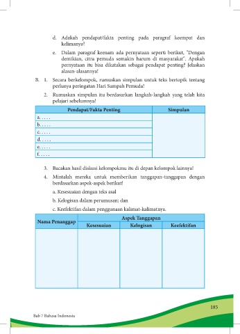 B. 1. Secara berkelompok, rumuskan simpulan untuk teks bertopik tentang