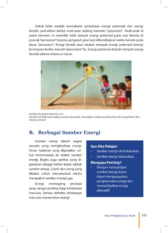 Gambar 5.8 Anak-anak sedang bermain perosotan, merupakan contoh perubahan bentuk energi kinetik dan
