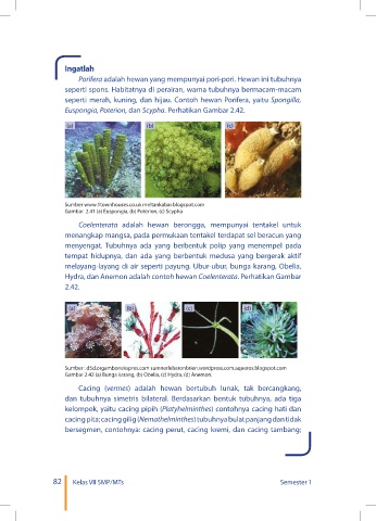 Euspongia, Poterion, dan Scypha. Perhatikan Gambar 2.42.