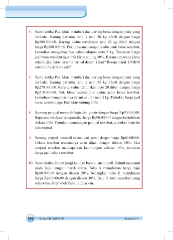 8. Seorang penjual membeli baju dari grosir dengan harga Rp50.000,00.