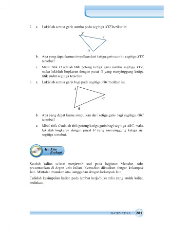 b. Apa yang dapat kamu simpulkan dari ketiga garis sumbu segitiga XYZ