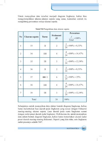 Tabel 9.8 Pengolahan data ukuran sepatu