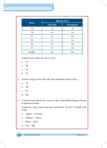 9. Untuk menyelesaikan soal nomor 9 dan 10 perhatikan diagram batang