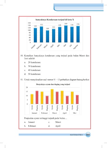 11. Untuk menyelesaikan soal nomor 11 – 13 perhatikan diagram batang berikut