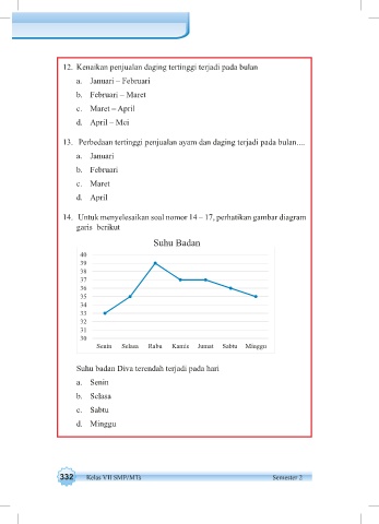 13. Perbedaan tertinggi penjualan ayam dan daging terjadi pada bulan....