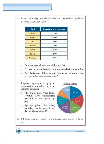 4. Dalam satu minggu banyaknya kendaraan yang melintas di jalan tol