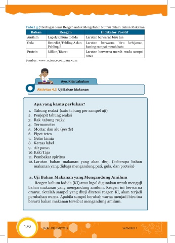 Tabel 4.7 Berbagai Jenis Reagen untuk Mengetahui Nutrisi dalam Bahan Makanan
