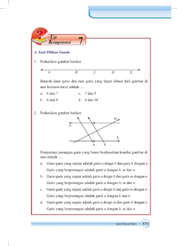 Garis yang berpotongan adalah garis a dengan b, m dan n