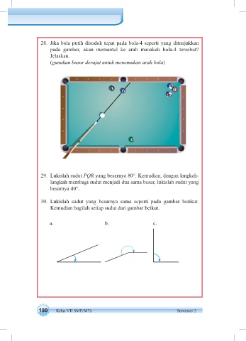 29. Lukislah sudut PQR yang besarnya 80°. Kemudian, dengan langkah-