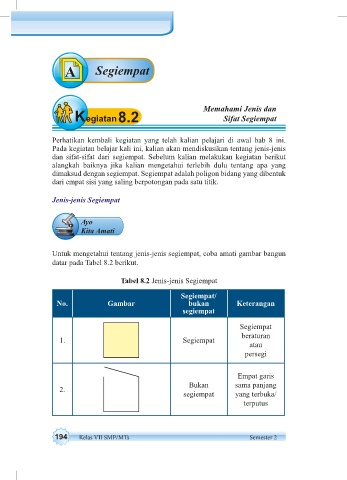 dan sifat-sifat dari segiempat. Sebelum kalian melakukan kegiatan berikut