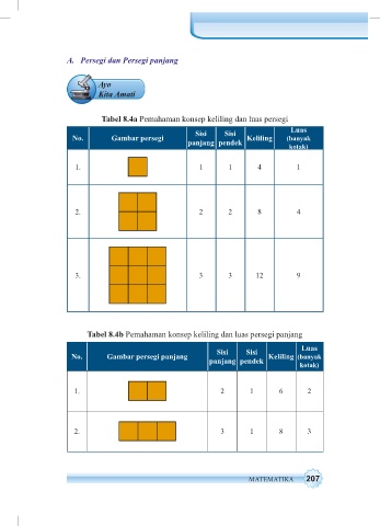 Tabel 8.4a Pemahaman konsep keliling dan luas persegi
