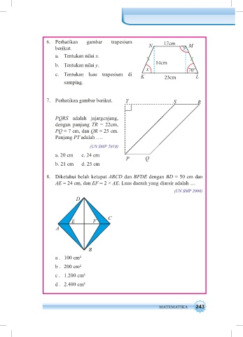 8. Diketahui belah ketupat ABCD dan BFDE dengan BD = 50 cm dan