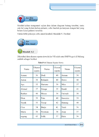 Diketahui data ukuran sepatu siswa kelas VII salah satu SMP Negeri di Malang
