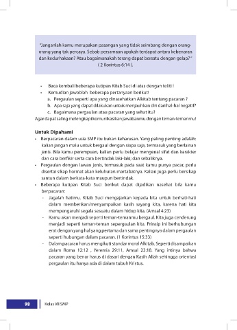 - Dalam pacaran harus mengikuti standar moral Alkitab. Seperti disampaikan