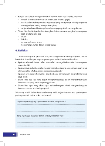 berefleksi. Jawablah pertanyaan-pertanyaan refleksi berikut dalam hati: