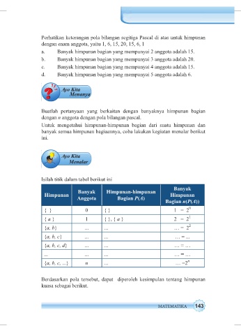 banyak semua himpunan bagiaannya, coba lakukan kegiatan menalar berikut