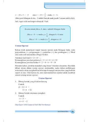 t = –15 ÷ 3 = –5 atau t = –15 × maka t = –5.