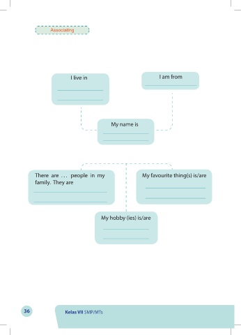 Associating I live in I am from My name is There are . . . people in my My favourite thing(s) is/are family. They are My hobby (ies) is/are 36 Kelas VII SMP/MTs