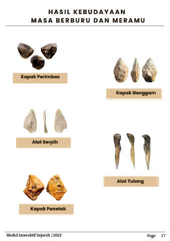 H A S I L K E B U D A Y A A N M A S A B E R B U R U D A N M E R A M U Kapak Perimbas Kapak Genggam Alat Serpih Alat Tulang Kapak Penetak Modul Interaktif Sejarah |2023 Page 17