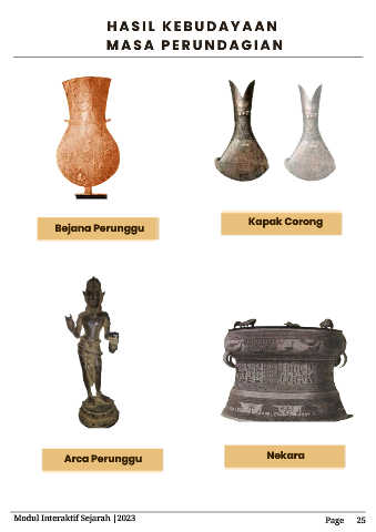 H A S I L K E B U D A Y A A N M A S A P E R U N D A G I A N Kapak Corong Bejana Perunggu Arca Perunggu Nekara Modul Interaktif Sejarah |2023 Page 25
