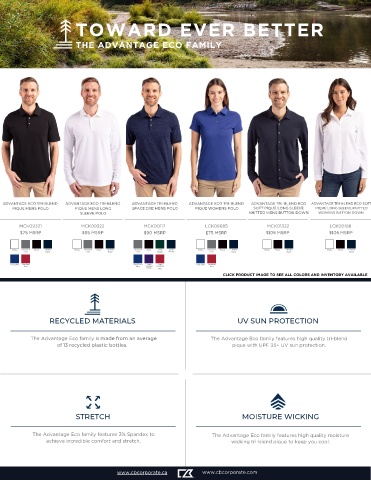 The Advantage Eco family features 3% Spandex to The Advantage Eco family features high quality moisture