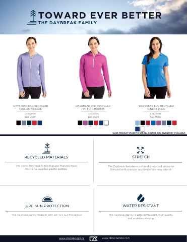 The Daybreak family features UPF 50+ UV Sun Protection.        The Daybreak family is ultra-lightweight, high quality,