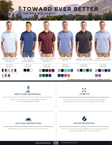 The Pike Eco family features UPF 50+ UV Sun Protection. The Pike Family is made with certified eco-friendly polyester and