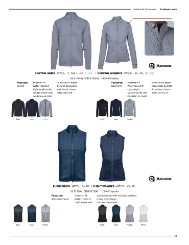 FLIGHT MEN’S - WP53L    S - 3XL  /  FLIGHT WOMEN’S - WP21L    XS - XXL