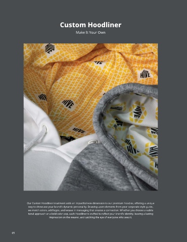 tonal approach or a bold color pop, each Hoodliner is crafted to reflect your brand’s identity, leaving a lasting