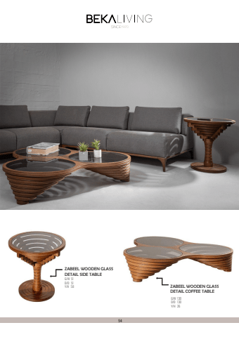 54 SINCE 1970GZABEEL WOODEN GLASS DETAIL COFFEE TABLEG/W 130 D/D 130Y/H 26ZABEEL WOODEN GLASS DETAIL SIDE TABLEG/W 51 D/D 51Y/H 58