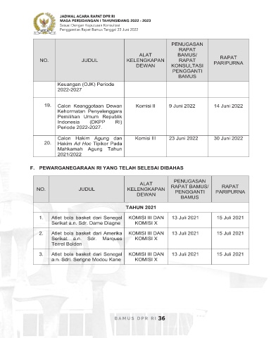 JADWAL ACARA RAPAT DPR RI MASA PERSIDANGAN I TAHUNSIDANG 2022 - 2023 Sesuai Dengan Keputusan Konsultasi Penggantian Rapat Bamus Tanggal 23 Juni 2022 36