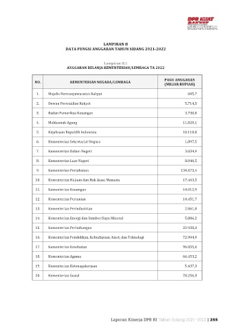 254 | Lampiran Laporan Kinerja DPR RI Tahun Sidang 2021--2022 | 255