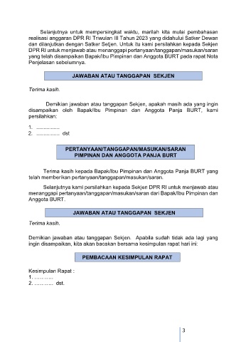 Selanjutnya kami persilahkan kepada Sekjen DPR RI untuk menjawab atau