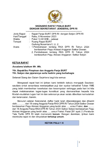 Acara : 1.Pembahasan tentang RKA DPR RI Tahun 2024